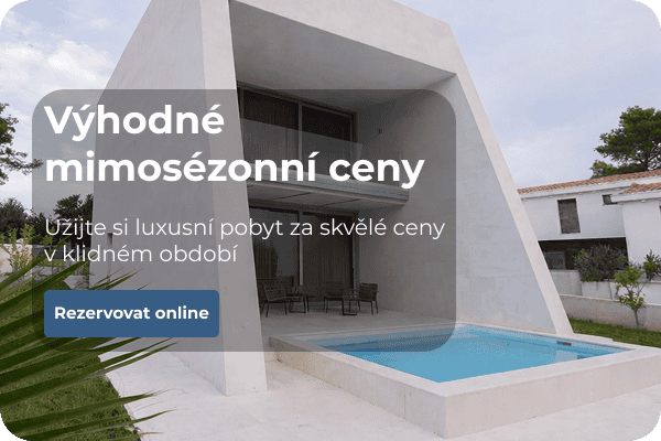 Vily, postavené na návrh renomovaného českého architekta Zdeňka Fránka, jsou obložené bílým bračským vápencem a spolu se třetí soukromou vilou tvoří nádherný celek ve stylu soudobé moderní architektury. Nacházejí se pouhých 10 km od Zadaru, historického, kulturního a gastronomického centra oblasti. Vily leží u pobřeží Jaderského moře. Každá má privátní bazén a terasy na venkovní posezení, slunění a grilování. Rozlehlá střešní terasa poskytuje soukromí a večerní posezení se sklenkou vína a s krásným výhledem na moře a město Zadar. Do centra Petrčane, se spoustou restaurací, barů, občerstvení, obchůdků a atrakcí pro děti i dospělé je to pouhých 300 m pěšky.
